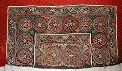 Altai CraftThis cooperative is a providing women with employment by sewing. They have some beautiful Kazakh embroidered bags, pillowcases, placemats, coats, Kazakh hats, and even Christmas stockings!