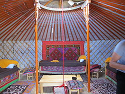 MuseumYou should take time to visit it before heading out to the countryside to see the displays of Kazakh culture, local history, and wildlife. The 3-story museum has an entire floor dedicated to various tribes living in Bayan-Ölgii including the majority Kazakhs, Uriankhai, Dörvöd, Tuva, and Khoshuud, including a complete Kazakh ger (much larger and more colorful than Mongolian gers). There are also costumes and ancient artifacts from each tribe. The second floor has local history from the Communist era, and the ground level covers local wildlife, with many stuffed animals, and has a gift store full of Kazakh handicrafts. Outside is a small display of ancient small Turkic Stone Men (ones in countryside are much bigger).
