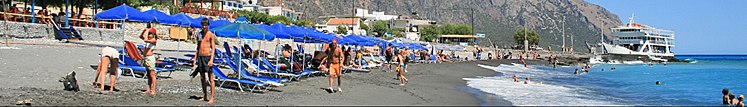 Agia Roumeli is a coastal village in southwestern Crete near the southern end of the Samaria Gorge.
