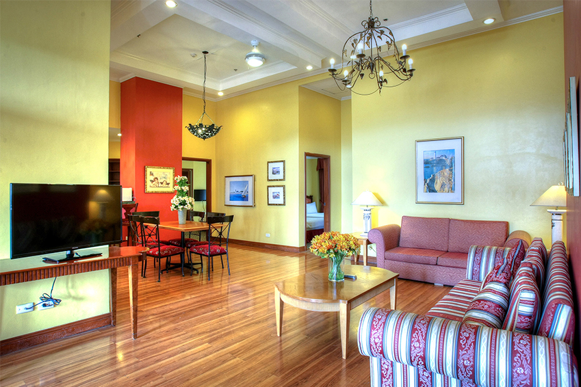 phone: +63 2 535 0519address: No. 7 Leonard Wood Loop, Barangay M. RoxasDeluxe and two bedroom suites with balcony, living area and kitchen. Coffee shop, lobby lounge, tour services, spa and massage services.