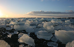 - Ice On The Beach - In addition to viewing the lagoon, consider visiting the beach to see ice that has washed up on the shore. On either side, east and west, of the bridge over the discharge from the lagoon there are tracks to parking areas a few hundred meters from the road. During the winter, the beach on the east side of the bridge provides the best vantage point for sunrise. The beach on the west side of the bridge is oriented southwest and aligns nicely for sunset.