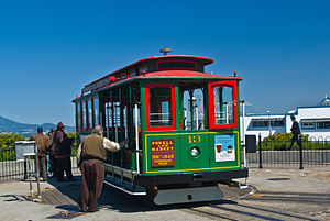 - MUNI's historic F streetcar line comes up on Market from Castro Street, turns west at the Embarcadero in front of the Ferry Building, and traverses much of Fisherman's Wharf. You can exit at any of the Market St BART or MUNI Metro stations to catch the streetcar to Fisherman's Wharf.